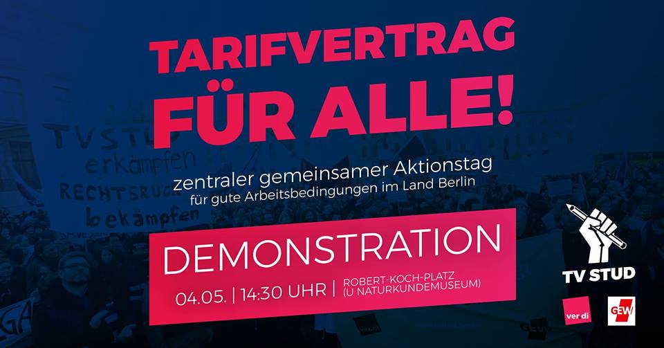 - 14:30 Uhr Auftaktkundgebung der studentischen Beschäftigten